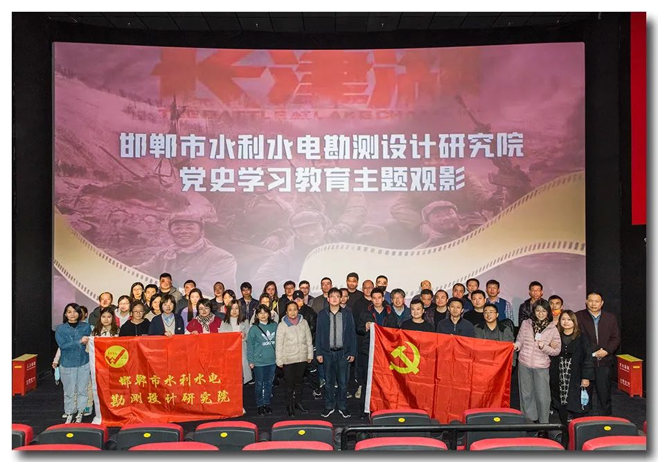 為進一步深入開展黨史學(xué)習(xí)教育,牢記習(xí)近平總書記"加強革命傳統(tǒng)教育、愛國主義教育,把紅色基因傳承好,確保紅色江山永不變色。"的殷殷囑托,引導(dǎo)廣大黨員干部不忘初心、牢記使命,為邯鄲水利事業(yè)發(fā)展新篇章凝聚奮進力量,10月21、22日下午,設(shè)計院組織全體黨員干部開展主旋律影片《長津湖》觀影活動。