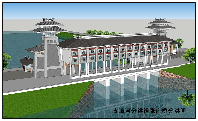 張莊橋分洪閘位于支漳河分洪道進口,是邯鄲市中心城區(qū)防洪排瀝規(guī)劃重要的組成工程,主要作用是排泄張莊橋以上滏陽河洪水與渚河洪水。張莊橋分洪閘排泄流量為482 m³/s。張莊橋分洪閘工程等別為Ⅲ等,閘室等主要建筑物為3級建筑物,防洪標準為100年一遇。