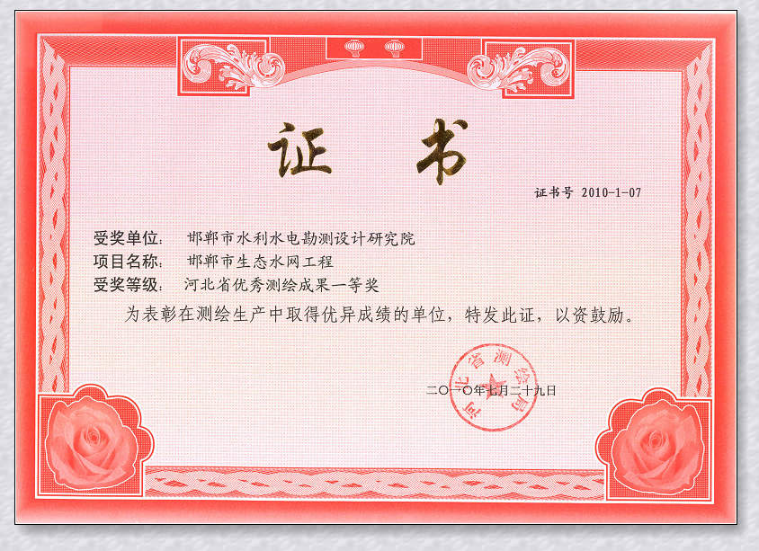 2010年生態(tài)水網(wǎng)工程測繪一等獎