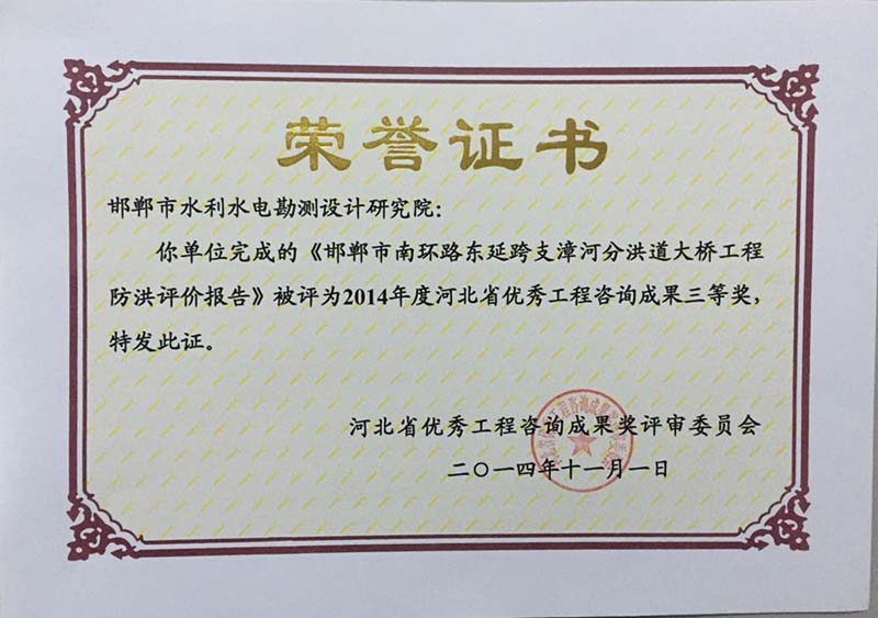 2014年度河北省優(yōu)秀工程咨詢成果三等獎