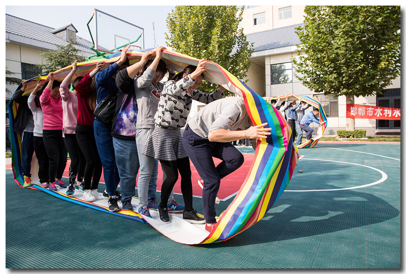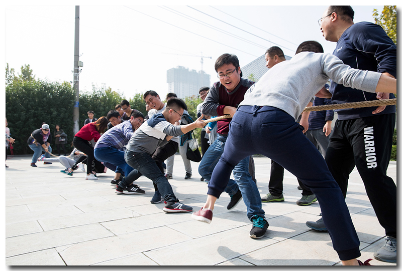 本次運動會共有8個項目,分別為:多人拔河、多人跳繩、滾滾向前、不倒森林、鐵環(huán)接力、摸石過河、背夾球接力、巨人腳步。比賽中,大家相互幫助,互相鼓勵,協同合作,以完美的團隊合作完成各項比賽項目。